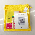 こちらの商品は、「巾着」、「編み物キット」、「道具」、「基礎本」がセットになったギフト用キットです。「基礎本」が付いていないタイプもございます。