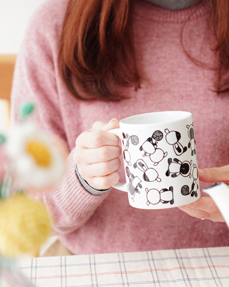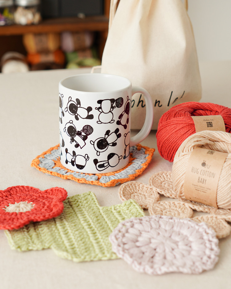 「ハグコットンベイビー」のふんわりとやさしいカラーは、ひつじのマグカップとも相性抜群。 30分ほどでサクッと編み上がるので、新生活のちょっとした合間のリフレッシュにもちょうどいいボリューム感ですよ。