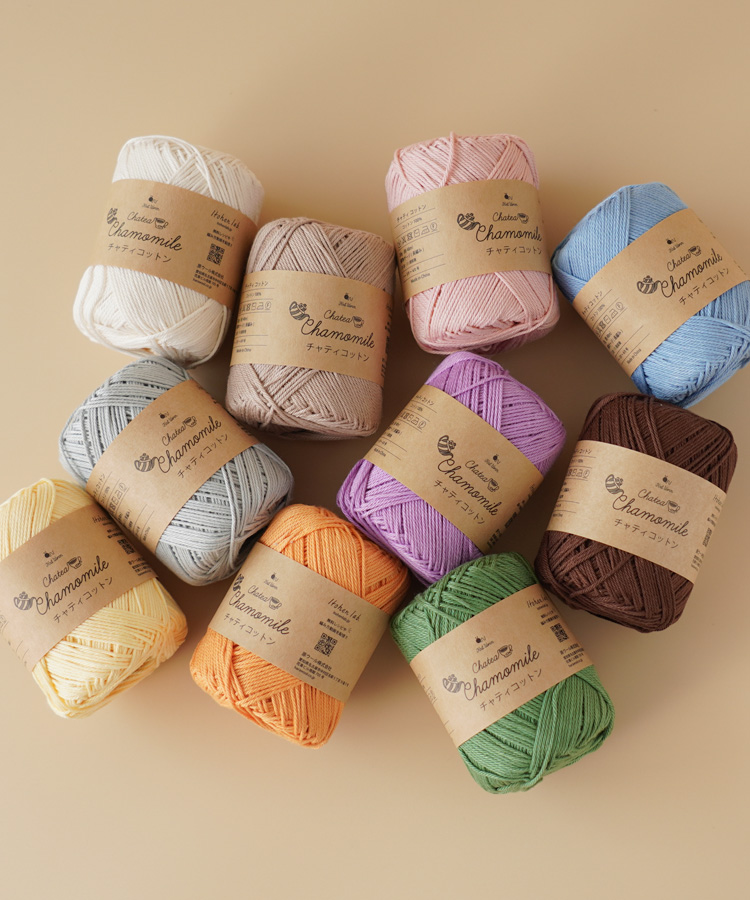 「チャティコットン」は、手軽にコットン編みを楽しめる、お手頃価格が魅力の「チャティ」シリーズ。コットン100%の中細タイプで、しっかりとした撚りがかかった糸です。