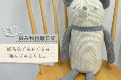 使用している手編み糸「カシミーベイビー」は、マイクロファイバーアクリルとナイロン素材。ウールを使用していないため、お洗濯の際に縮みを気にせず扱えるのもうれしいポイントです。カシミアのようになめらかでやさしい手触りで、ふんわりとした雰囲気のあみぐるみに仕上がります。