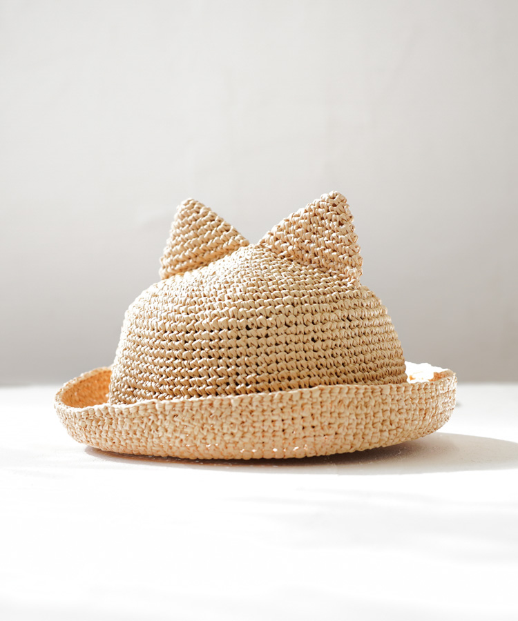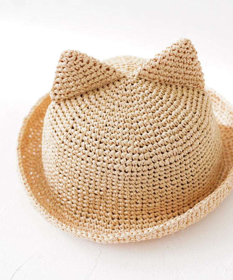 思わず子どもにかぶせたくなってしまう、猫耳付きの帽子キット。ちょこんとした猫耳がかわいらしく、お子さまのコーディネートのアクセントになります。猫耳を付けずに仕上げれば、シンプルでおしゃれな麦わら帽子としても楽しめます。