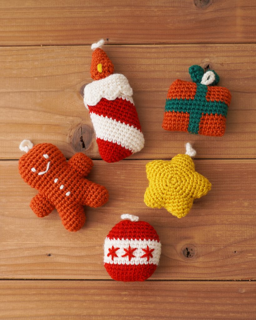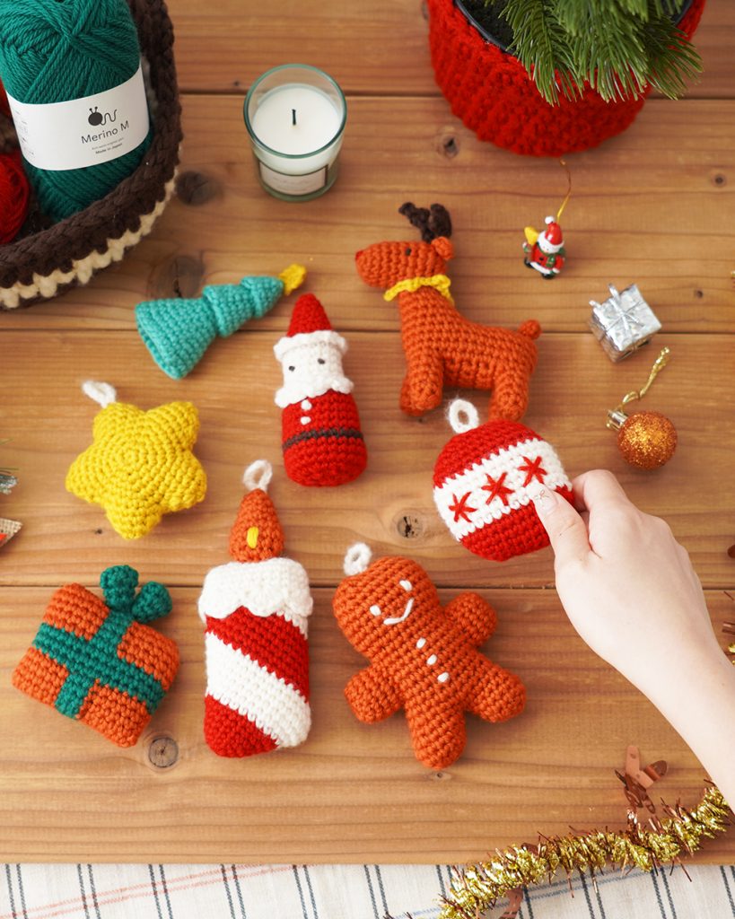 今回ご紹介したサンタさん、ツリー、トナカイのあみぐるみが編めるお得な毛糸セットを販売しています。この毛糸セットには今回紹介する3種類のあみぐるみに加えて、5つのクリスマスのオーナメントの編み図もセットになっています。