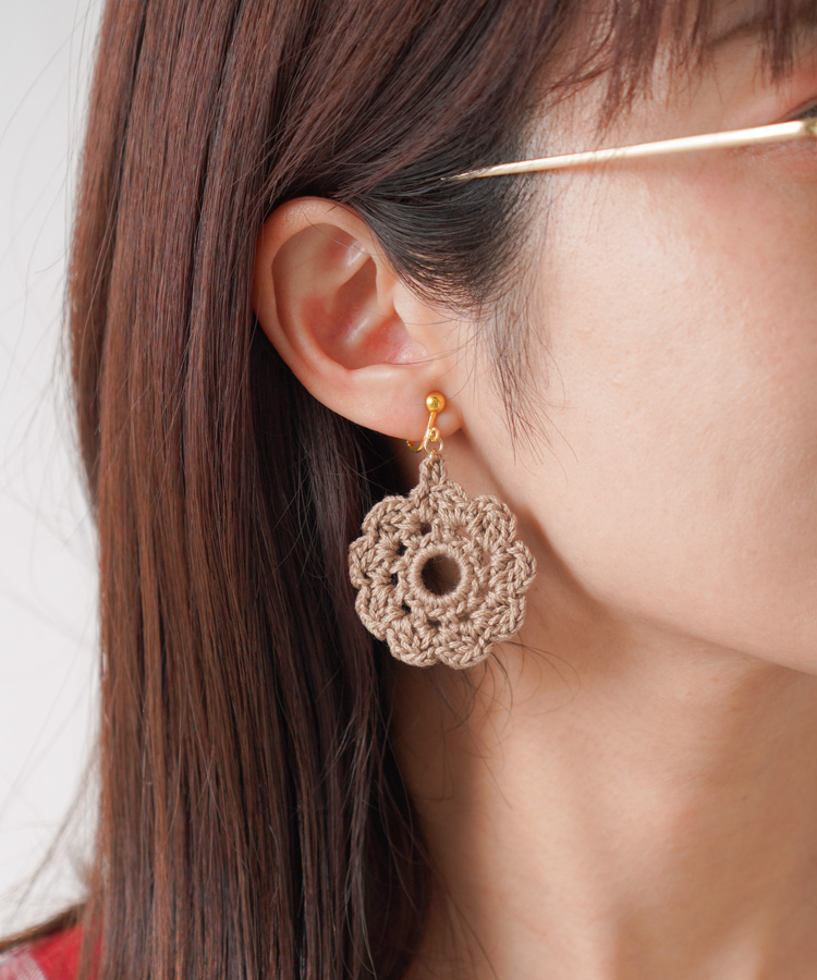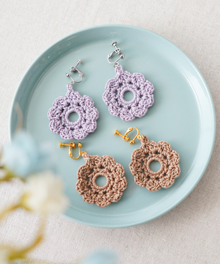 ③お花モチーフのイヤリング|ニットリングを使った編みアクセサリー