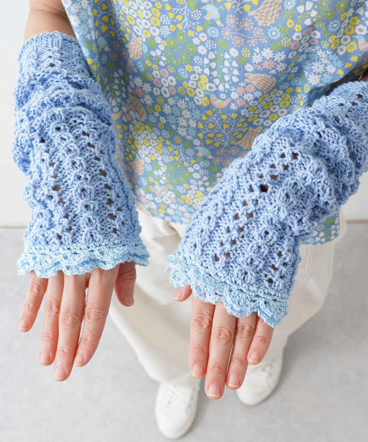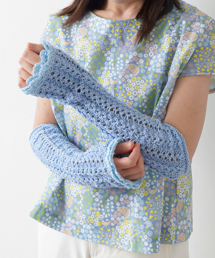 - 透かしレース模様が涼しげな棒針編みのアームカバー