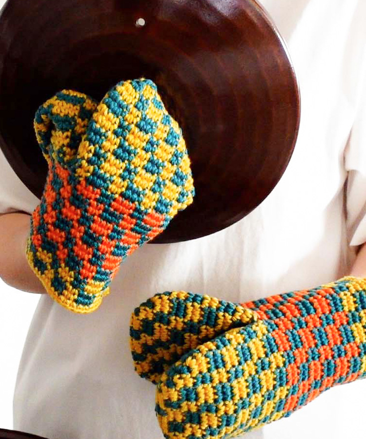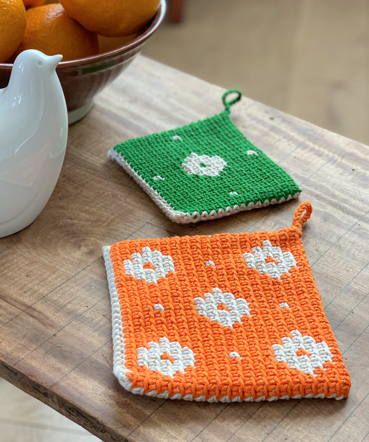 ⑧編み込み模様のなべつかみ&なべしき|キッチンで活躍する手編み小物