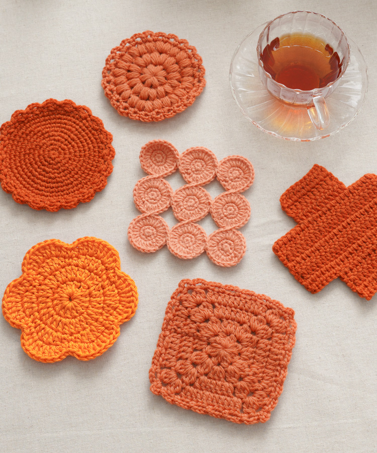 コースターは少ない糸量で編めるので、気軽に挑戦できる編み物のひとつ。
