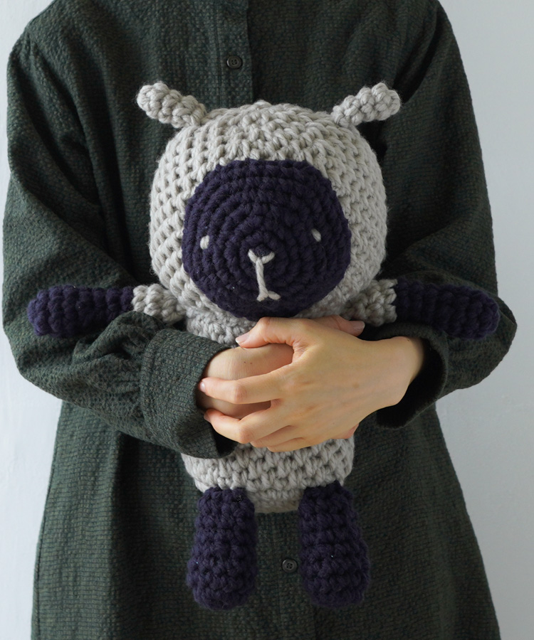 かわいらしい表情が魅力の手編みのあみぐるみ。