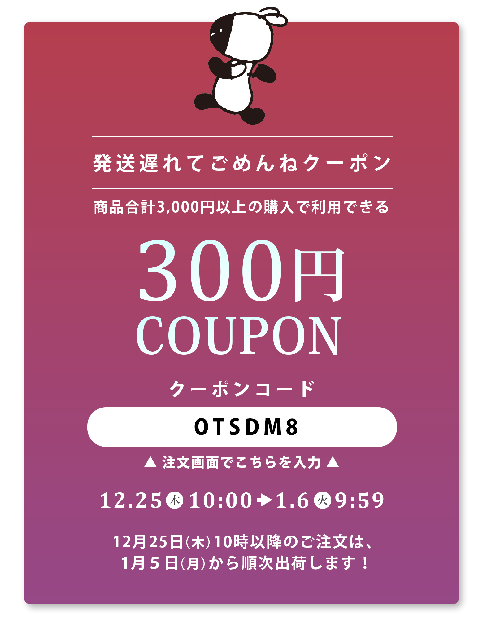クーポンコードの期間は12月25日(木)10:00~1月6日(火)9:59まで!