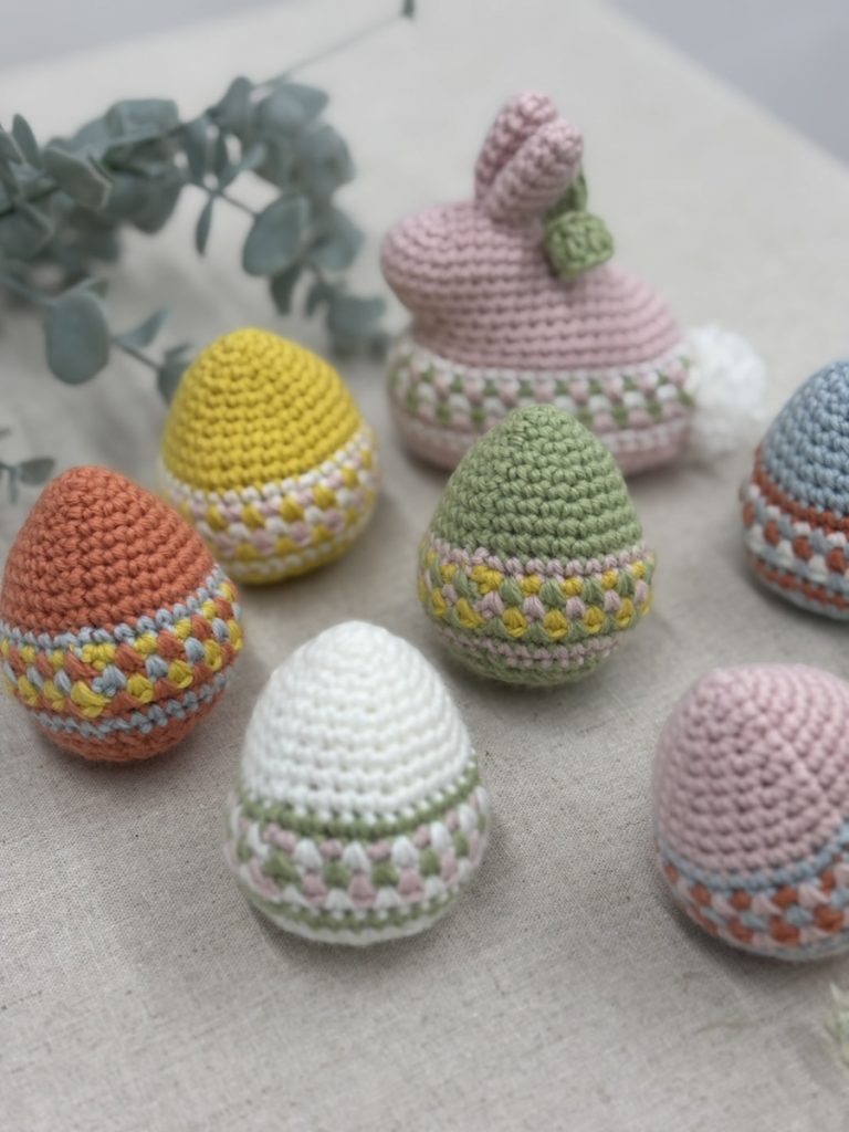 日本には、あまり馴染みのないイベントですが、卵やウサギなどのイースターのシンボルモチーフがとってもかわいい!ということで色とりどりのかわいい卵とウサギを編むことができる糸セットを企画中です。