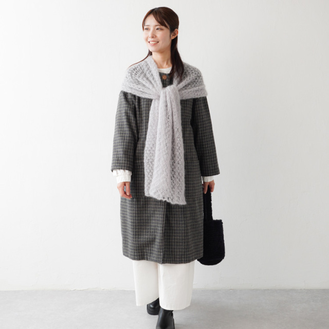 最高級糸で編んだストールでリッチな気分を満喫コーデ