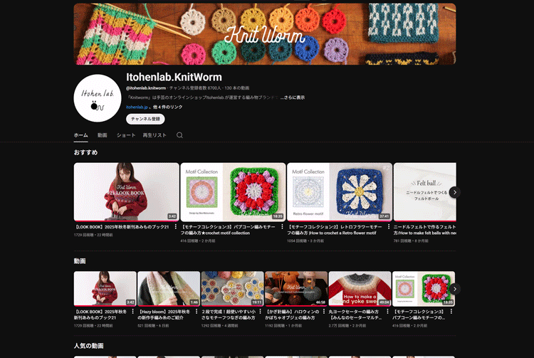 Itohen lab.公式Youtubeチャンネルでは、編み方動画や基礎動画も公開しています。